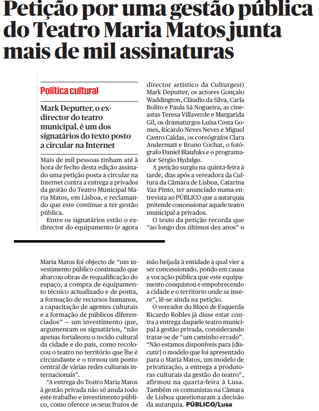 PETIÇÃO | Contra a entrega a privados da gestão do Teatro Municipal Maria Matos