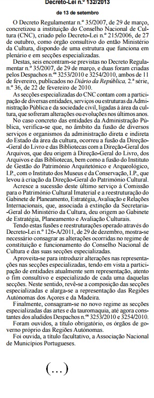 Assim, para relançar reflexão, o diploma base que atualmente rege o CNC - o Decreto-Lei n.º132/2013. De lá: