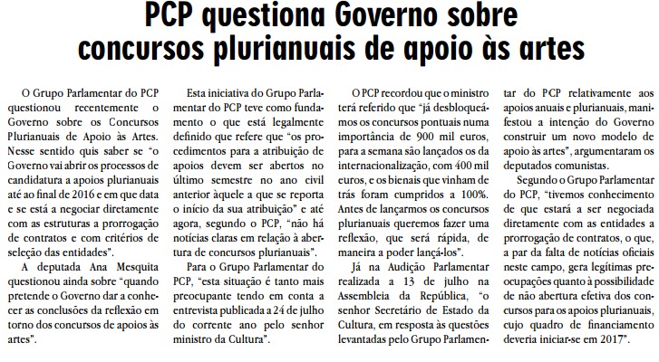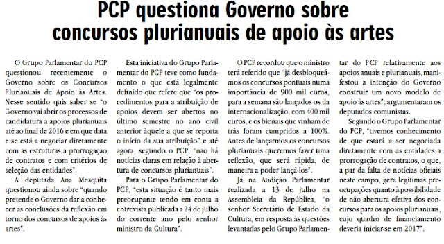 Por exemplo, comparando o que está no Requerimento do PCP com o que é dito na entrevista dada pelo Secretário de Estado da Cultura a que nos referimos aqui, parece que nada bate com nada ...
